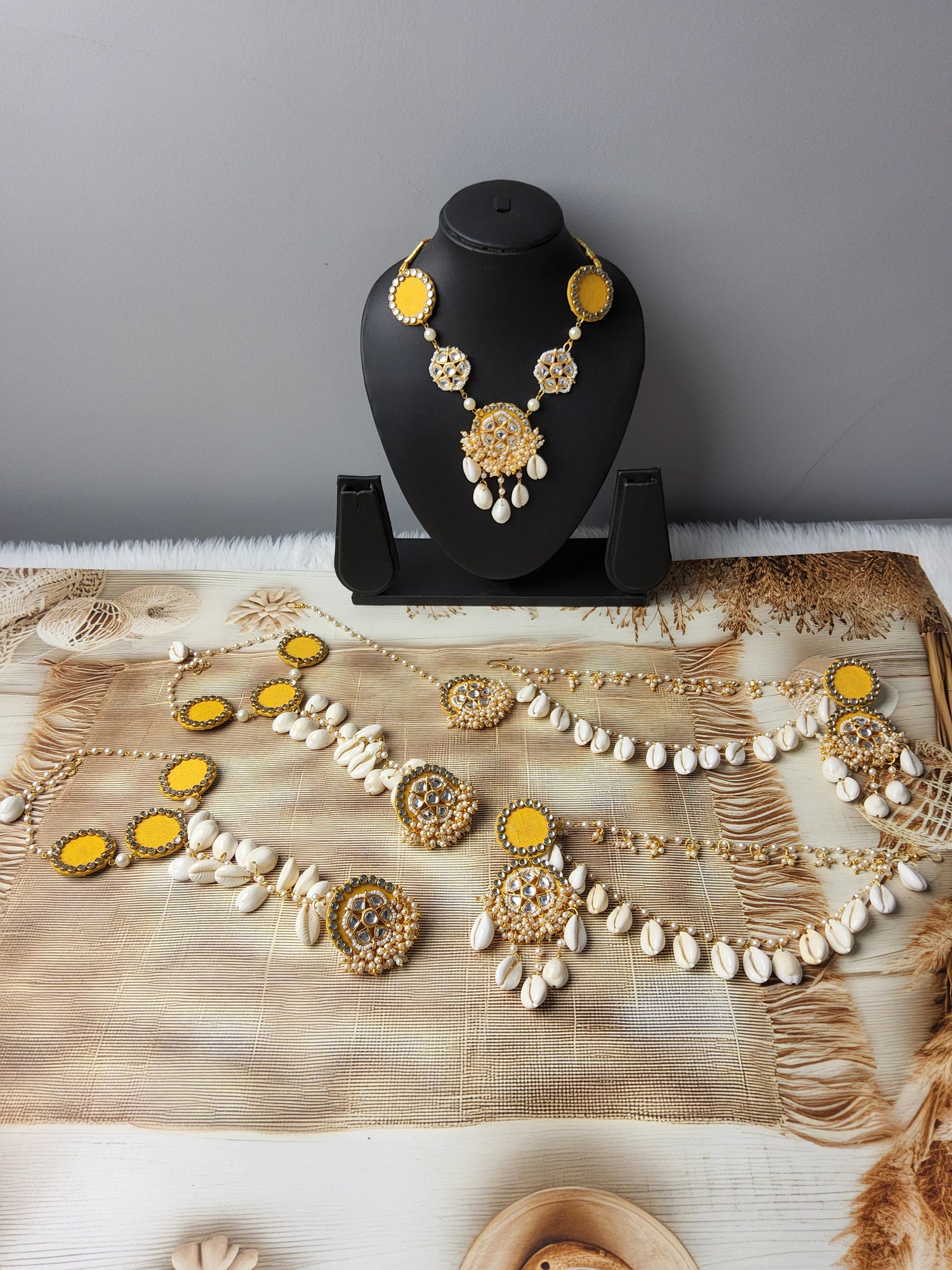 Stunning Yellow and White Artificial Flower Jewelry Set for Haldi and Mehendi
