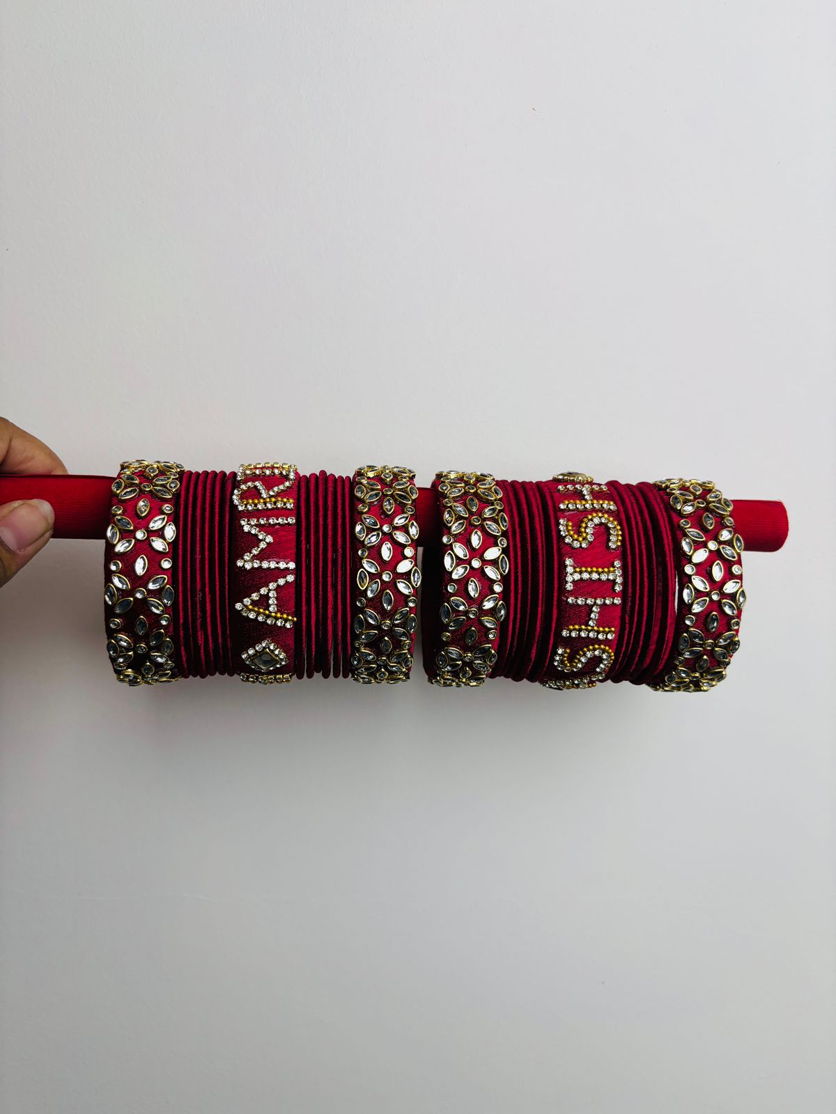 Personalized Name Silk Thread Kundan Bangles | Wedding Chuda